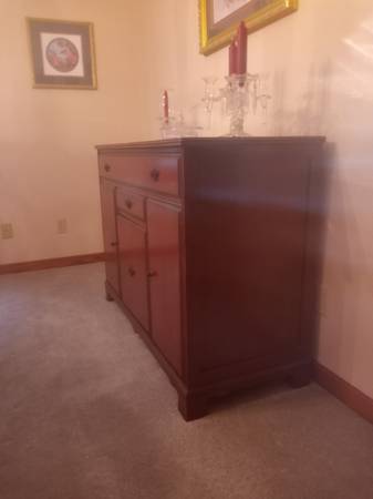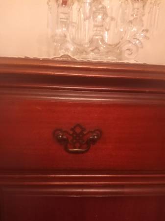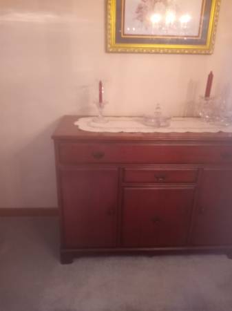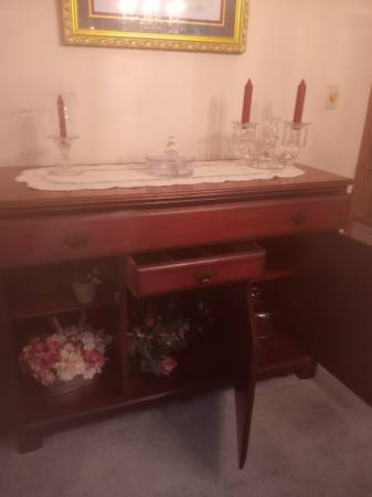 This was my mother and fathers and dates back to the 40's. It is in outstanding condition and made of Mahogany. It measures 50 x 20 x 36. It has 2 drawers and 3 doors. Everything is original...