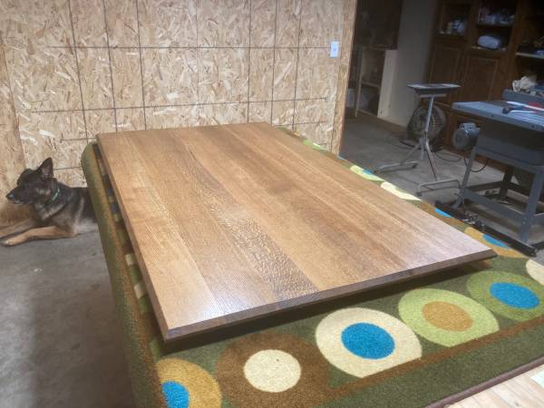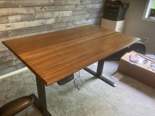 Beautiful brand new solid oak desktop for use with sit-stand frame. Custom made on order from select grade solid oak. Desktop in photo is 58”x34” white oak but other sizes and wood species are available. Hand made in one man shop. Can recommend compatible electric desk frame if desired. Prices vary according to size and type of wood. Call, e-mail or text. show contact info