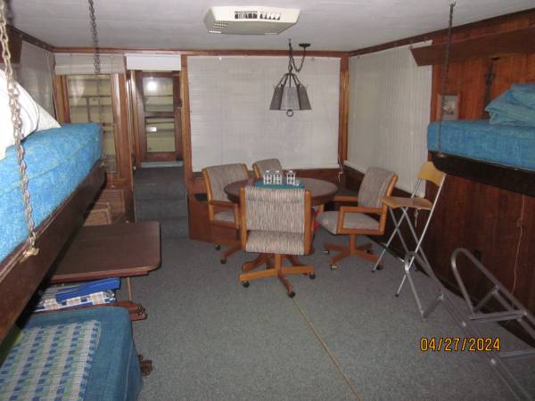 BOAT IS 45' LONG AND15' WIDE. IN 1995 THE BOAT WAS REPOWERED WITH A 160hp MERCRUISER,ENTIRE BOTTOM WITH REPLACED WITH STEEL, AIR CONDITIONING INSTALLED AND INTERIOR UPDATED