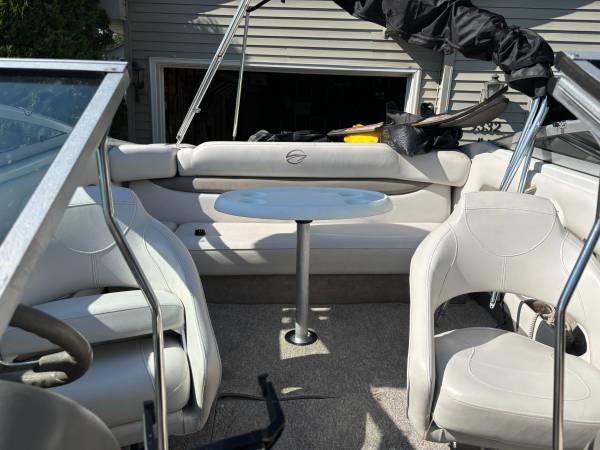 21 Foot 2015 Crownline I/O Boat with 220 HP Merc Cruiser Engine for sale. Boat used many times in 2016-2018. Thereafter, boat only used for one week per year in 2019, 2022 and 2025. Boat has only 228 running hours on it so like a 3 year old boat. Recent use boat ran great. Boat and accessories sold as is. Accessories include extra prop, Humminbird Helix 5 GPS depth finder, 2 water skis and ski rope, 2 person water raft, oar and 2 bumper buoys. Asking price $28,750.