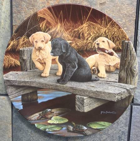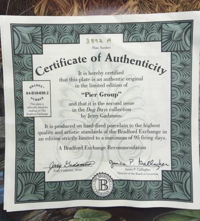 Wide variety of dog plates some with certificates. Variety of artists: Jerry Gadamus Jim Killen Robert Christie Sharon Eide & Elizabeth Flynn Don Scarlett Patricia Bourque