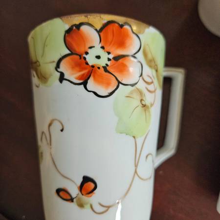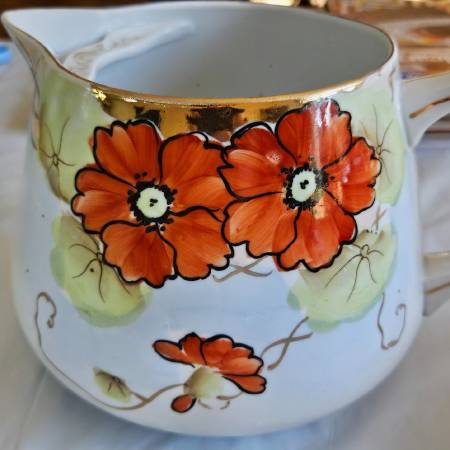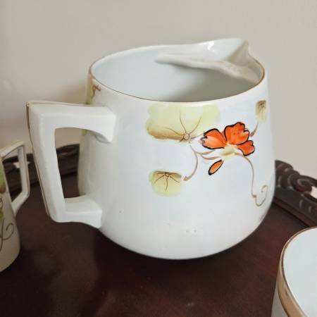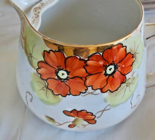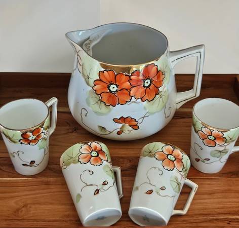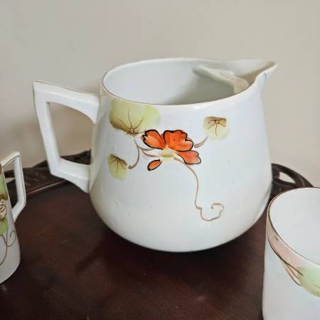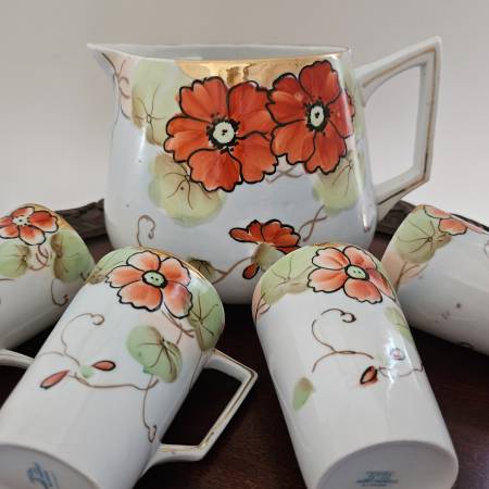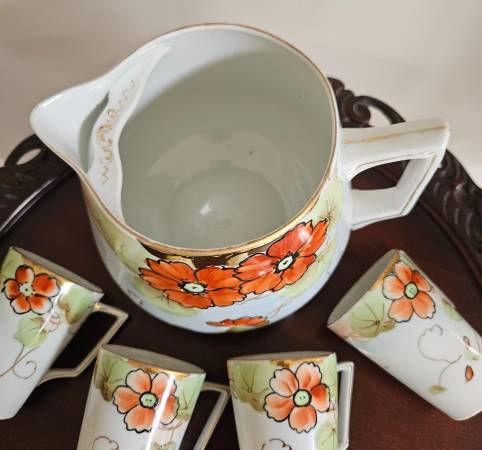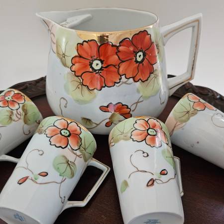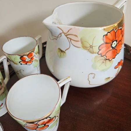 Antique Nippon Japan Pitcher and Teacups Orange Poppy Flower -...
