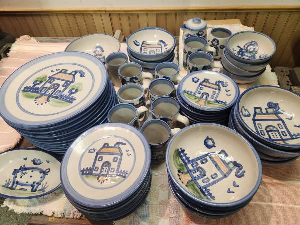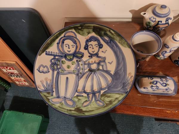 Signed M.A. Hadley farm pottery collection. Near complete set including soup tureen, teapot and dinnerware. Sale as individual pieces would command a significantly higher price if we wanted to break this up but we will be selling only as a set. You can check price individual pieces on FB Marketplace or eBay to confirm this is a extremely reasonable price for pieces in pristine condition. If this ad is up it is available. Specifics on the set: