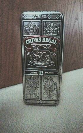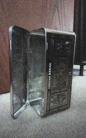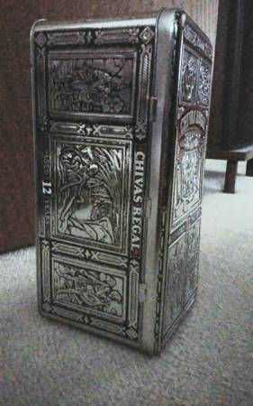 Chivas Regal Scotch Whiskey 10" Tall Metal Hinged Box. Approximately 4" Wide and Deep. A must have for the avid beer collector, man cave, rec room, bar, or garage decor.