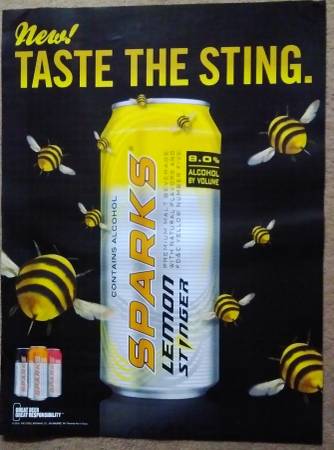 NOS Sparks Flavored Beer "Taste the Sting" Poster 24 X18 New Poster. I will remove the ad when it is gone. If you are interested please call. It is a land line, so don't bother texting. I only check...