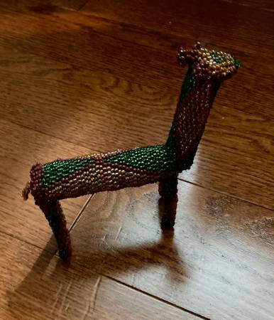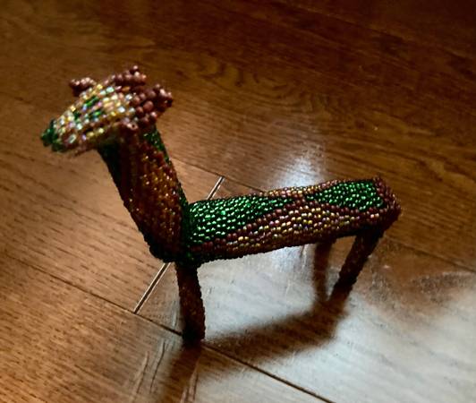 Unique and beautiful figurine. Measures approximately 6 inches tall and 5.5 inches long. Excellent condition. Appears that all of the beads remain intact. Cash only. Pick up in Stillwater.