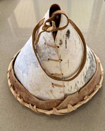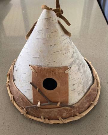 Handcrafted Native American Ojibwe Birch bark tepee birdhouse. This is a beautifully crafted tepee with respectfully harvested Birch bark, Willow twigs and hand stitched with leather cord. In...