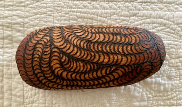 A unique piece of hand carved artistry from Australia! Measures approximately 7.5x3.5. This is a piece of wood that reminds me of a turtle shell. It is in excellent condition without chips or...
