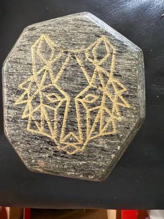 Decorative octagonal stone with geometric wolf design. Like-new condition. Measures approximately 4x3.5x1.25, Cash only. Pick up in Stillwater. Please ask if you are also interested in bear and...