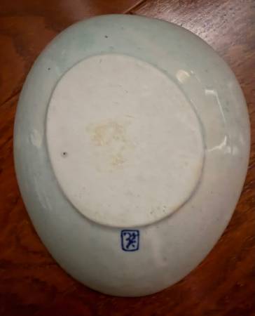 This oval plate, measuring approximately 5x6 inches, can be used for serving various dishes or snacks, would also make a nice trinket tray. In beautiful like new condition- no chips or cracks.