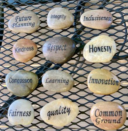 Gorgeous river rocks with all of the right words! Measure 1.5-2.25 inches, all shapes and colors. Like-new condition. 1st pic shows all. Subsequent pics are just close up of groups. Your choice for...