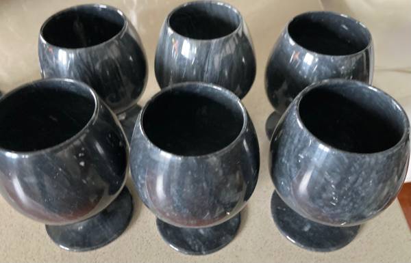 Elegant black goblets, handmade of genuine stone. Subtle gray veining.