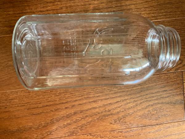 Nice clear glass 1/2 gallon jar with rings on the bottom and is numbered 6 (or 9). It has ribs or grips on the outside. It is in excellent vintage condition without chips or cracks. It doesn’t have...