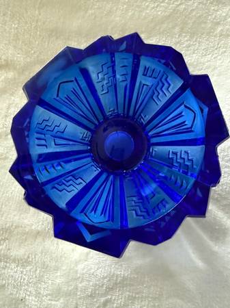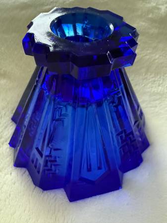 Vintage Flint Blue Cobalt Glass Wigwam Candlestick Holder -...