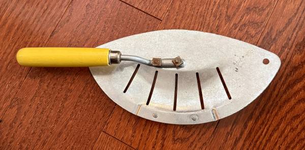 Vintage Foley Aluminum Strainer with a Yellow Wood Handle -...