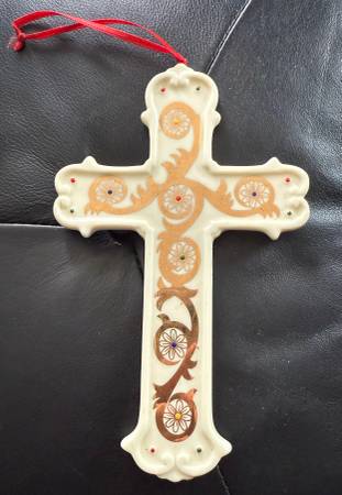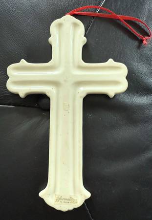 Intricately designed ceramic cross with floral patterns. Vintage Formalities Ornate Porcelain Wall Cross by Baum Bros.. Excellent condition cross that is 7.25" in length and 4.50" wide. Cash only....