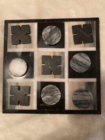 Vintage marble tic tac toe board in shades of gray with 10 pieces.