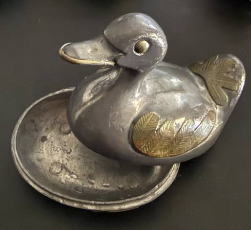 Vintage Pewter and Brass Duck Small Trinket Box - collectibles - by...