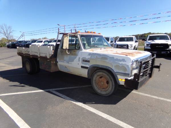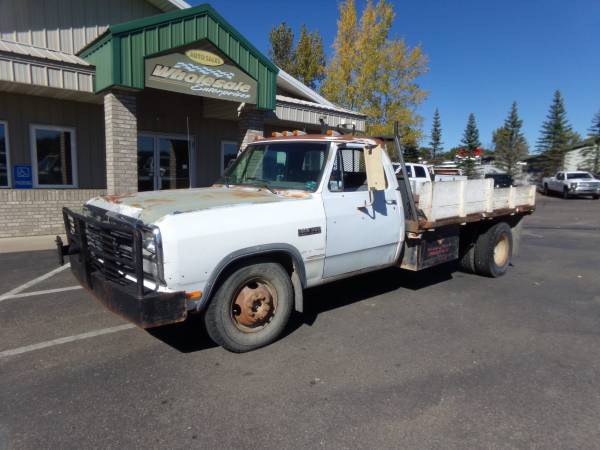 Solid Wyoming ranch truck. 2wd 1992 Dodge Ram 350 with Cummins diesel and manual transmission. Runs and drives good for a 33+ year old truck. Would make a good wood hauler, scrap hauler, farm truck, weekend warrior, etc... True miles unknown because of age. Odometer shows 130,679