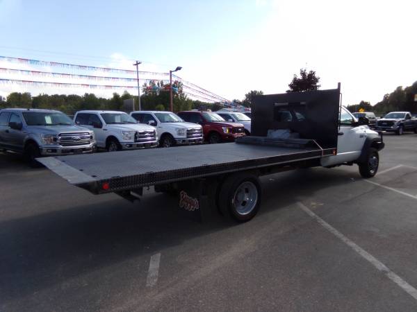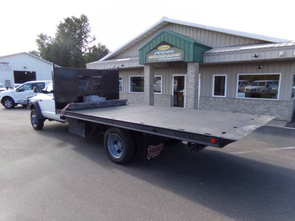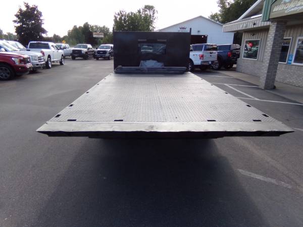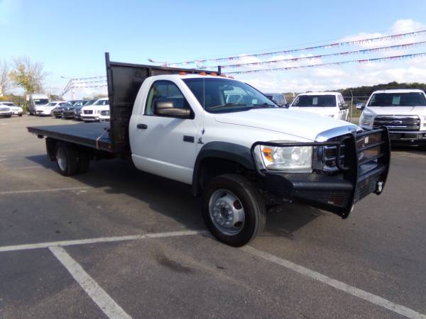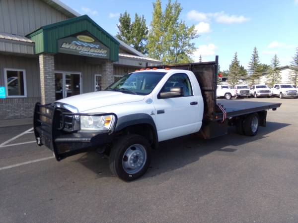 2008 Sterling Bullet 5500 regular cab flatbed DRW 4x4 with 6.7L Cummins diesel. Similar to dodge ram 5500 st. 19,500 lb. G.V.W.R. 17' flatbed that tilts with hydraulics. Cloth split bench seat, tilt, cruise, a/c, am/fm/cd/stereo, overhead console, camper/tow mirrors, clearance lights, winch, brush guard bumper, mud flaps, side box, and more. Professionally detailed, good tires, runs and drives great with 102,850 miles.