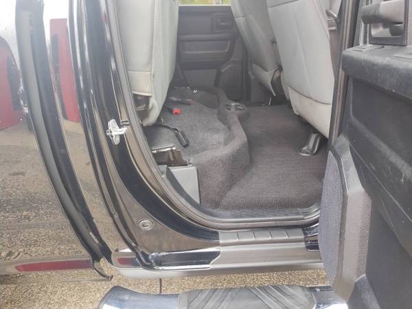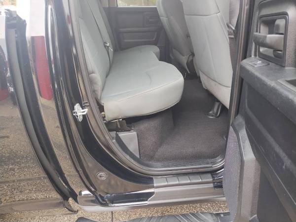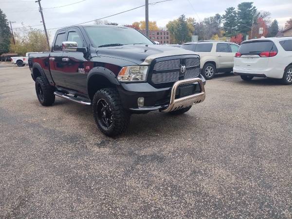 The 2014 Ram 1500 Tradesman 4x4 Quad Cab with a 5.7L Hemi V8 is a standout lifted black truck loaded with extras, including oversized tires. Fully serviced, detailed, and ready for delivery, it comes with financing and extended warranty options available through the dealership. For inquiries, contact Triangle Auto at 651-213-303.