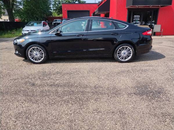 Rare find: 2016 Ford Fusion SE AWD with a sleek Shadow Black exterior and Charcoal Leather interior. This all-wheel-drive Fusion delivers up to 31 MPG on the highway. Fully serviced and detailed, it's ready for delivery. Financing and extended warranty options are available at the dealership. For inquiries, contact Triangle Auto at 651-213-3403.
