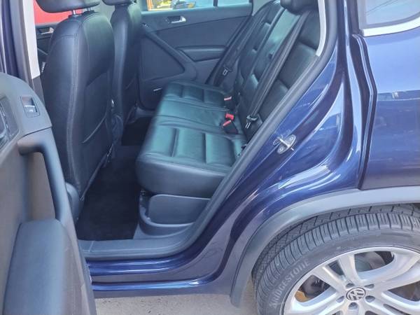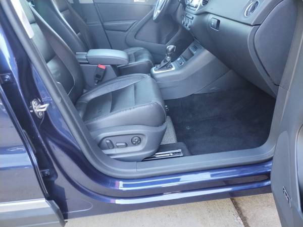 2016 Volkswagen Tiguan 2.0T SEL 4Motion AWD in Night Blue Metallic with a Black Leather Interior. Immaculate condition inside and out. Fully serviced and detailed, ready for delivery. Financing and extended warranty options available at the dealership. For any inquiries, contact Triangle Auto at 651-213-3403.