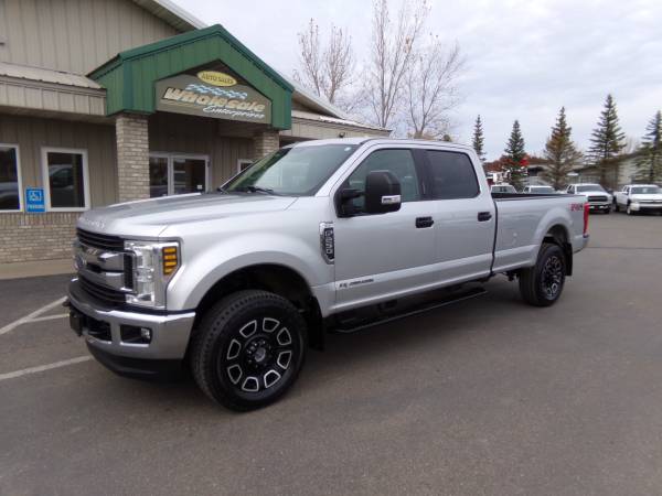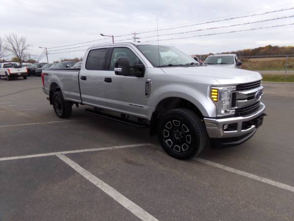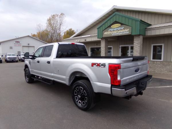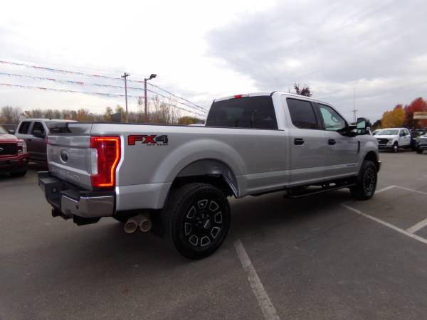 Solid, out of state crew cab long box 4x4 with 6.7L Diesel. XLT cloth interior pkg. with power options, tilt, cruise, remote start, backup camera, overhead console, am/fm/bluetooth stereo, 6 passenger seating, tinted windows, 3rd trailer brake controller, tow pkg., camper/tow mirrors, sprayed in bed liner, factory 5th wheel/gooseneck prep. pkg., aluminum wheels, running boards, fx4 off road pkg., mud flaps, fog lights, and more. Professionally detailed, good tires, runs and drives great with 49,347 miles.