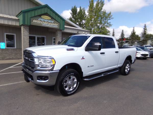 Solid, out of state crew cab short box 4x4 with 6.7L Cummins Diesel. Big Horn pkg. with full power options, tilt, cruise, 5 passenger bucket seating, large screen am/fm/blue tooth stereo, overhead console, up-fitter switches, steering wheel controls, tinted windows, 3rd trailer brake controller, tow pkg., camper/tow mirrors, sprayed in bed liner, running boards, aluminum wheels, and more. Professionally detailed, newer tires, runs and drives great with 109,197 miles.