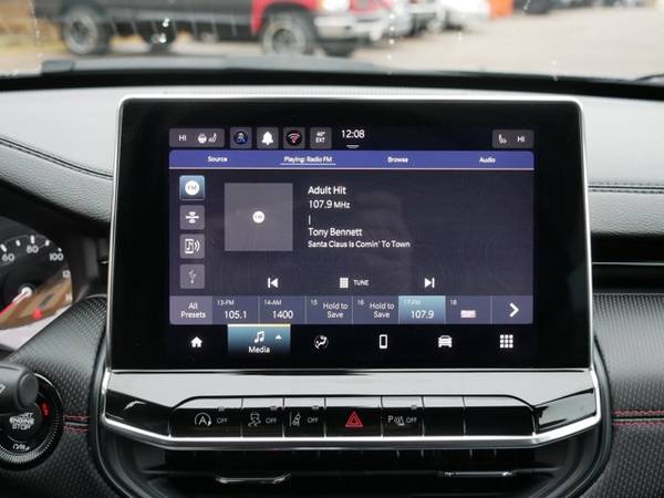 BLACK CLEARCOAT., STING-GRAY CLEARCOAT., FRONT LICENSE PLATE BRACKET., TU-TONE PAINT GROUP., Four Wheel Drive., Power Steering., ABS., 4-Wheel Disc Brakes., Brake Assist., Aluminum Wheels., Tires - Front All-Season., Tires - Rear All-Season., Conventional Spare Tire., Tow Hooks., Tow Hooks., Heated Mirrors., Power Mirror(s)., Rear Defrost., Privacy Glass., Intermittent Wipers., Rain Sensing Wipers., Rear Spoiler., Power Door Locks., Daytime Running Lights., Automatic Headlights., LED Headlights., Fog Lamps., Automatic Highbeams., AM/FM Stereo., Satellite Radio., MP3 Capability., Auxiliary Audio Input., Requires Subscription., Premium Sound System., MP3 Capability., Steering Wheel Audio Controls., Auxiliary Audio Input., Premium Sound System., Bluetooth Connection., Pass-Through Rear Seat., Rear Bench Seat., Adjustable Steering Wheel., Trip Computer., Power Windows., Leather Steering Wheel., Keyless Entry., Power Door Locks., Keyless Entry., Power Door Locks., Keyless Start., Cruise Control., Adaptive Cruise Control., Climate Control., Multi-Zone A/C., A/C., Cloth Seats., Leather Seats., Bucket Seats., Driver Vanity Mirror., Passenger Vanity Mirror., Auto-Dimming Rearview Mirror., Floor Mats., Smart Device Integration., Smart Device Integration., Requires Subscription., Power Windows., Power Door Locks., Trip Computer., Immobilizer., Security System., Traction Control., Stability Control., Traction Control., Front Side Air Bag., Blind Spot Monitor., Cross-Traffic Alert., Lane Departure Warning., Lane Keeping Assist., Lane Departure Warning., Front Collision Mitigation., Telematics., Requires Subscription., Tire Pressure Monitor., Driver Air Bag., Passenger Air Bag., Front Head Air Bag., Rear Head Air Bag., Passenger Air Bag Sensor., Knee Air Bag., Child Safety Locks., Back-Up Camera.,