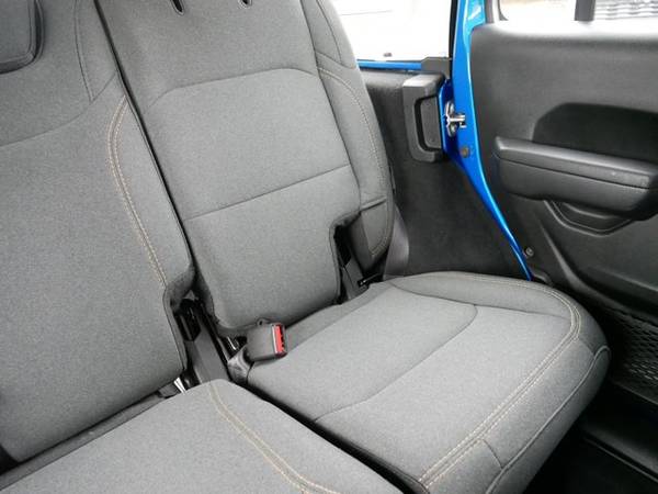 WHEELS: 17 X 7.5 GRAY (STD)., HYDRO BLUE PEARLCOAT., Four Wheel Drive., Power Steering., ABS., 4-Wheel Disc Brakes., Aluminum Wheels., Conventional Spare Tire., Tow Hooks., Tow Hooks., Intermittent Wipers., Privacy Glass., Rollover Protection Bars., Convertible Soft Top., Fog Lamps., AM/FM Stereo., Bluetooth Connection., MP3 Capability., Steering Wheel Audio Controls., Auxiliary Audio Input., Bluetooth Connection., Driver Adjustable Lumbar., Driver Adjustable Lumbar., Pass-Through Rear Seat., Rear Bench Seat., Adjustable Steering Wheel., Trip Computer., Power Windows., WiFi Hotspot., Keyless Start., A/C., Cloth Seats., Bucket Seats., Floor Mats., Smart Device Integration., Power Windows., Trip Computer., Immobilizer., Traction Control., Stability Control., Traction Control., Front Side Air Bag., Tire Pressure Monitor., Driver Air Bag., Passenger Air Bag., Front Head Air Bag., Rear Head Air Bag., Passenger Air Bag Sensor., Child Safety Locks., Back-Up Camera.,