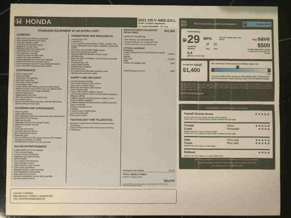 2021 Honda CR-V EX-L AWD - $32,395