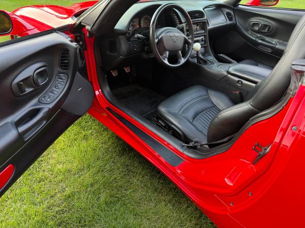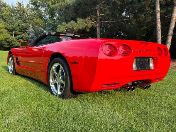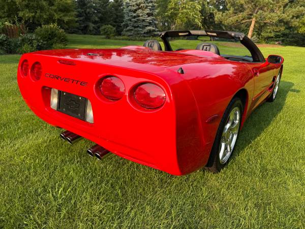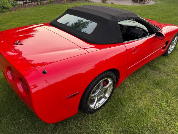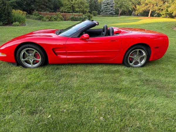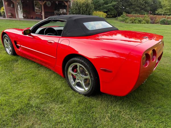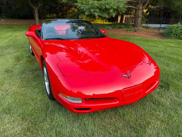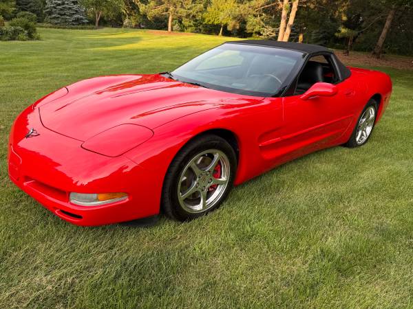 2001 Corvette Convertible. 5.7 Liter 350 HP V8. 6-Speed Manual Transmission. Torch Red Exterior with Black Leather Interior and Black Convertible Top. 5-Spoke High Polished Aluminum Wheels. Preferred Equipment Group 2 Option Package with Heads Up Display, Remote Mounted 12-disk CD Player, Bose Sound System, Power Windows, Power Locks, Power Trunk Release, Keyless Remote Entry, 6-Way Power Drivers Seat, Air Conditioning, Cruise Control, Glass Rear Window with Defogger, Power Antenna . Flowmaster Exhaust System. New Goodyear Eagle Tires. 45,900 Actual Miles. Fresh Mobile 1 Oil and AC Filter Change, New Delco Battery. Have Maintenance Records, Owner’s Manual and Window Sticker. Extremely Well Cared For, Clean Carfax Report Included, Never in an accident. Everything works, Need Nothing. Runs, Drives, Looks and Sounds Amazing. Adult Driven, Non-smoker, Garage kept, Heated winter storage in car condo. Car Cover Included. $21,500, price is firm. Cash or Cashier’s Check, No Trades. Serious Inquiries Only Please. I will delete this ad promptly when the car sells so if the ad is posted it is still available.