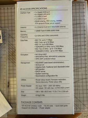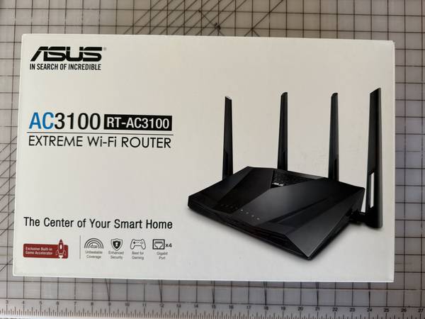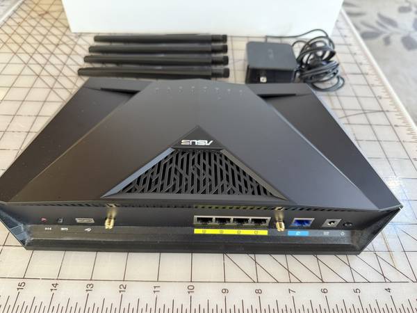 Selling an excellent condition Asus RT-AC3100 Dual-Band Wireless Gigabit Wi-Fi Router. With a maximum wireless data rate of 2167 Mbps and a maximum LAN data rate of 1000 Mbps, this router provides fast and reliable connectivity for multiple devices. It features four LAN ports, one USB 2.0 port, and a sleek black design, making it both functional and stylish. Perfect for home networking and connectivity needs, the Asus AC3100 is a top choice for those seeking a reliable and high-speed wireless router.