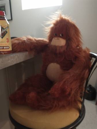 I have a large orangutan stuff, he is in excellent condition. He is about 24 inches high and about ten inches across by the arms, I had him in my street rod for year and he is spotless. Sold the car so no longer will need. $20 cash located in Forest lake , I will remove when sold so no need to ask.