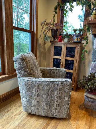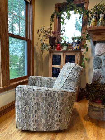 Beautiful, comfortable flex steel chair that swivels all the way around very little use no stains like new condition * we live in Hammond, Wisconsin