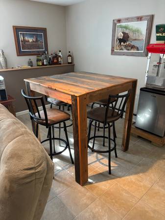 I have a Barnwood handcrafted table with chairs for sale. It is bar height and roughly 3 1/2‘ x 3 1/2‘.