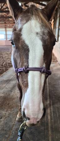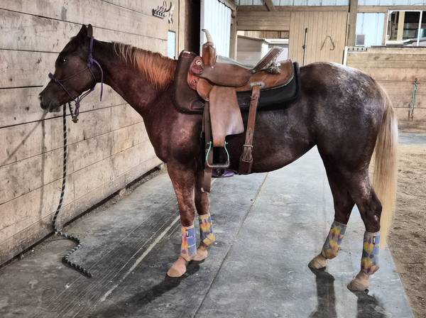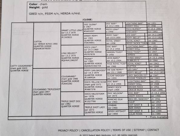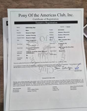 2022 Registered Pony of America mare. SHR KITY KAT. Great grand daughter to Smart Little Lena. See pedigree above. Ties, loads, saddles, lounges W/T/C, bathes, clips and ground drives. Young filly that is a fabulous youth prospect. She does not have that typically pony attitude. She has been started smart and slow and will be a breeze to finish out. Very calm, curious, intelligent, wants to please, i have not found anything that she spooks at. Desensitized to all the things, tarps, umbrellas, plastic bags, loud noises, being alone, kids running around, flags, whips, etc. UTD with all cares including vaccines, 2025 coggings, teeth floated/wolf teeth extracted August 2025. This filly continues to be worked and trained 3-4 days a week. As training progresses her price will go up.