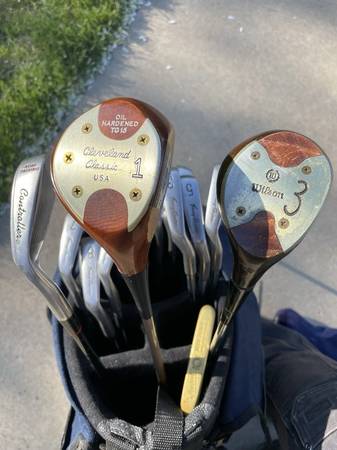 Several clubs I bought individually. I played by feel so anything that accentuated that was accepted into the set. I have a Cleveland classic persimmon driver, driving iron, and 64 degree loft wedge, as well as a bulls-eye putter. These clubs alone are valued at the selling price.