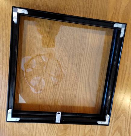 Shadow box - Metal frame with glass. 12.25" x 12.25" x 2.125" usable depth. Black brushed aluminum. Cost new $70 H@bby L@bby. Excellent condition - like new. $30 Please TEXT. No emails please / no...