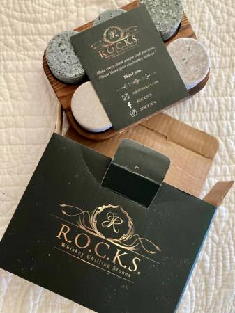 Set of the original R.O.C.K.S. whiskey chilling stones- new in box. Definitely giftable! Discover fast-cooling non-diluting round solid granite stones used to perfectly cool fine spirits without...