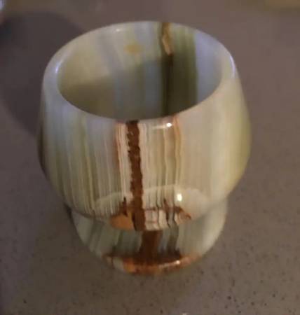 The first is ceramic that was handmade made by a local potter.