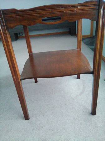 Antique End Table. 26 and 1/2 inches high by 19 inches wide. Sturdy. Over 60 years old.