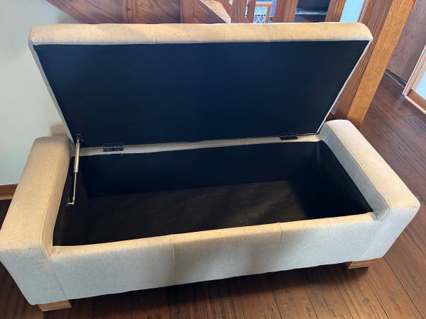 Nice looking light gray ottoman in great shape with storage Fits with many styles Measurements 51” L x 20” W x 16.5 H I can deliver it around the east suburbs Thanks