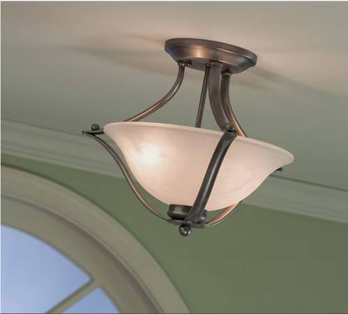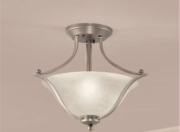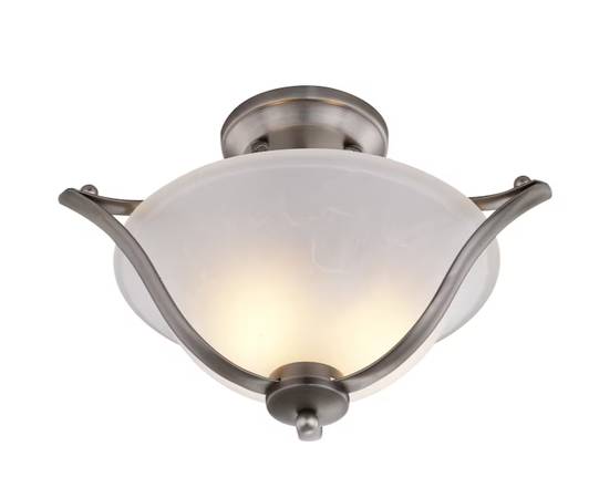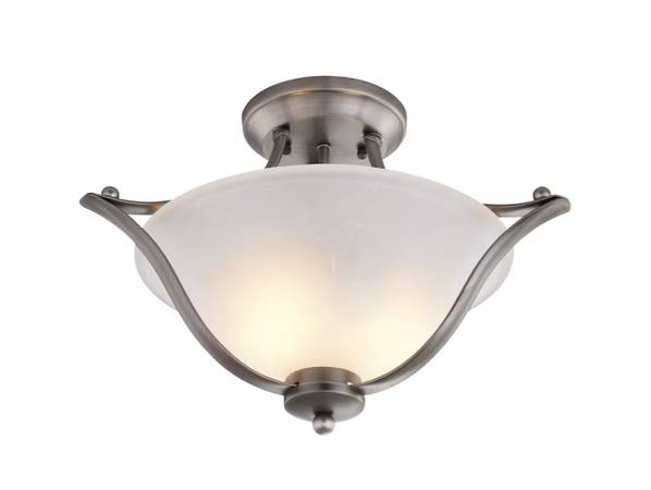 Portfolio 2-Light Brushed Nickel alabaster glass LED Semi-flush mount light. One/only owner; works as new.