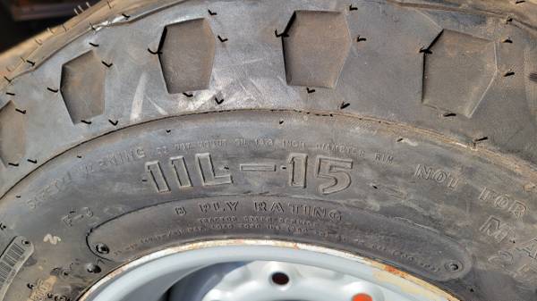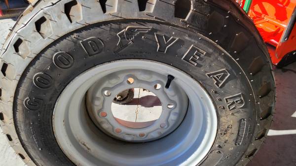 New Goodyear 11Lx15 Laborer F3 front tractor or implement tire. 8 Ply, mounted on a new 8 bolt 15x10 rim. No longer have the equipment this was for. Asking $250 or best offer.