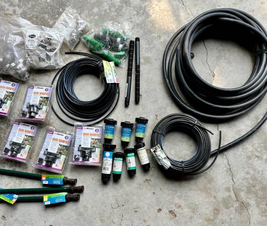 Rainbird irrigation controller, 16 valves, 1/2” and 1/4” line, and numerous other parts. We decided not to install all of the system and these are new.