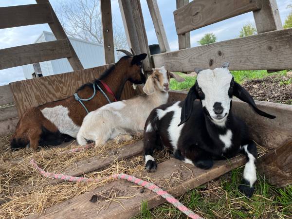 4 year old kiko doe, brown and white in photo 2. Her buckling has been sold and I’m retaining her doeling, but she’s refusing to wean her remaining kid and is a bit under conditioned as a result. She was born here and is easy to handle, leash trained, great feet, always throws flashy kids and has had twins every year. Easy kidder, produces a lot of milk for fast growing kids. Buck above is her kid from last year. Priced to move at $150