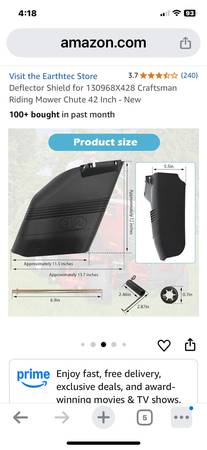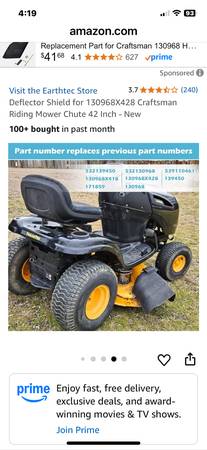 2 new unused 42” lawn mower deck exhaust chute or deflector. Fits craftsman and others. Have plastic part only . Part numbers in photos. Yes they’re still available I’m about 5 minutes north of...
