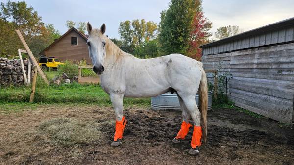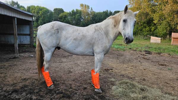 Phillippe is a 15.3 hand, 16yr old draft cross. He came from southern Wisconsin second chance lot. Was planned to keep him to but life changes have me looking for a new home for him. He takes a bit to warm up to new people but once he does he loves attention. He is up to date on vaccines, had his teeth done a few weeks ago and is scheduled to have his feet done at the end of the month. He is broke to ride, I have not ridden him much other than a lap or two around the pasture bareback with a halter. He is sound. He is middle to low in the pecking order. He is an all around sweetheart. Located in Hastings MN.